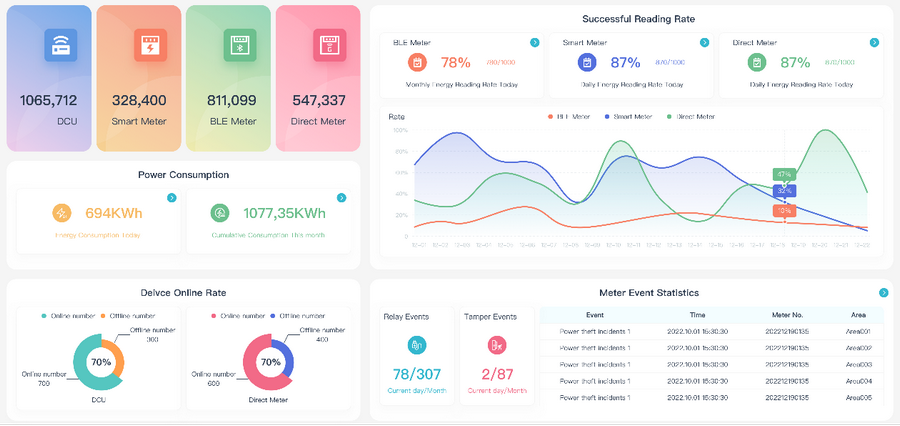 Head End System(HES)是用電信息采集系統(tǒng)的大腦,用于自動采集和管理各類電能計量終端的數(shù)據(jù)。乾程HES系統(tǒng)可全面適應(yīng)各類客戶電力信息化建設(shè)需求,支持PLC、Wi-SUN、GPRS、4G等多種通信方式,同時兼容DLMS、IDIS等國際主流通信協(xié)議標準,具備高可靠性、高穩(wěn)定性、高并發(fā)等特性,能夠?qū)崿F(xiàn)與MDM、SCADA等系統(tǒng)的無縫對接,助力電網(wǎng)的智能化運維管理。